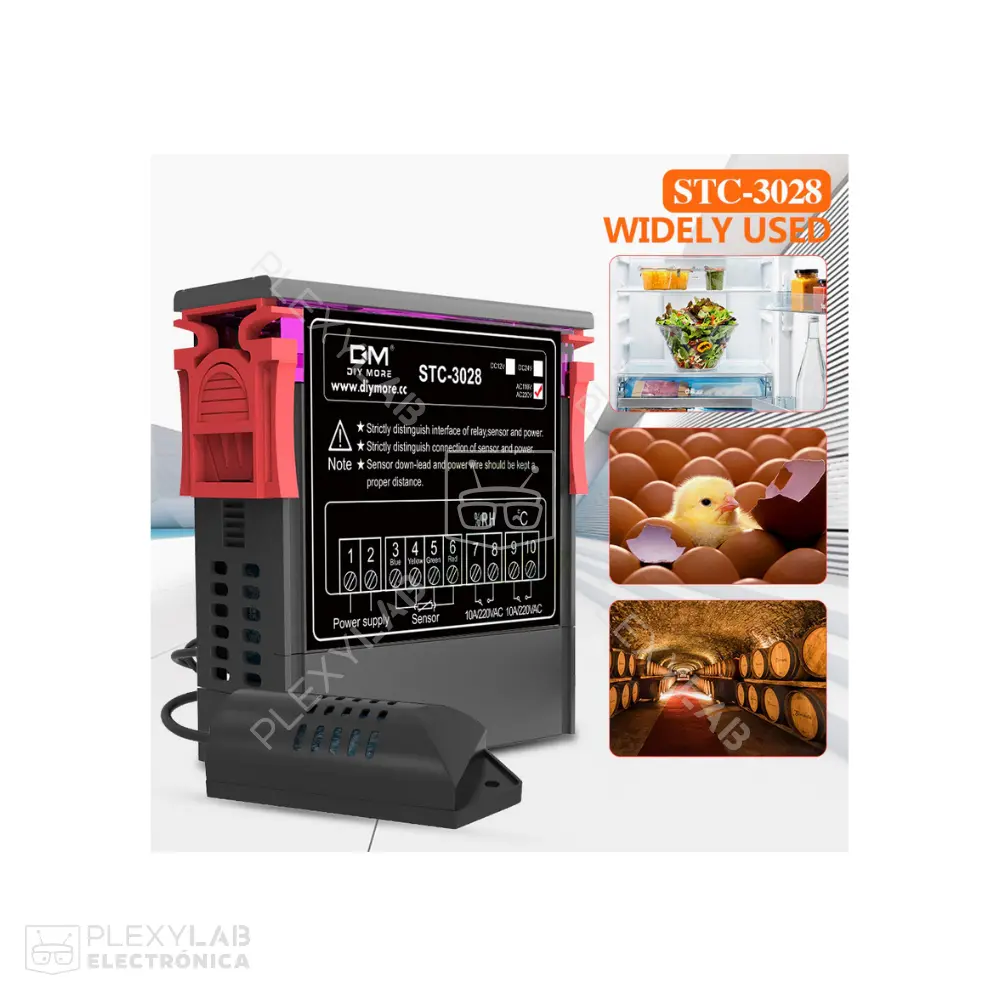 Gracias a su configuración flexible, este dispositivo se adapta a entornos como incubadoras, invernaderos, acuarios y sistemas HVAC domésticos o industriales. Disponible en PLEXYLAB, el STC-3028 combina funcionalidad y eficiencia para proyectos que requieren monitoreo ambiental constante.